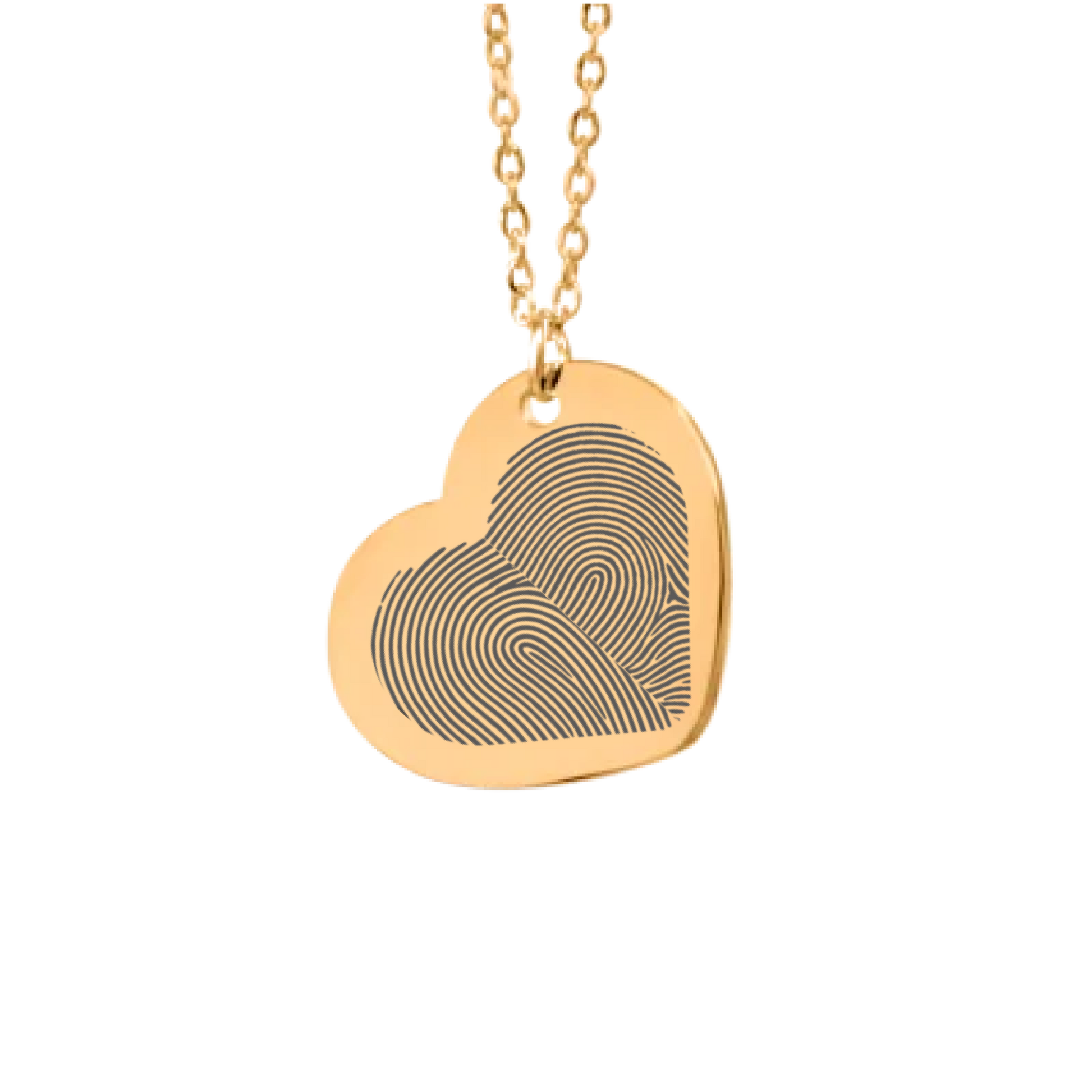 Ihr ladet einfach eure beiden Fingerabdrücke hoch, und wir gravieren sie nebeneinander in den herzförmigen Anhänger. So entsteht ein individuelles Schmuckstück, das eure Beziehung, eure gemeinsame Geschichte und eure Liebe in einem sanften, zeitlosen Symbol festhält.