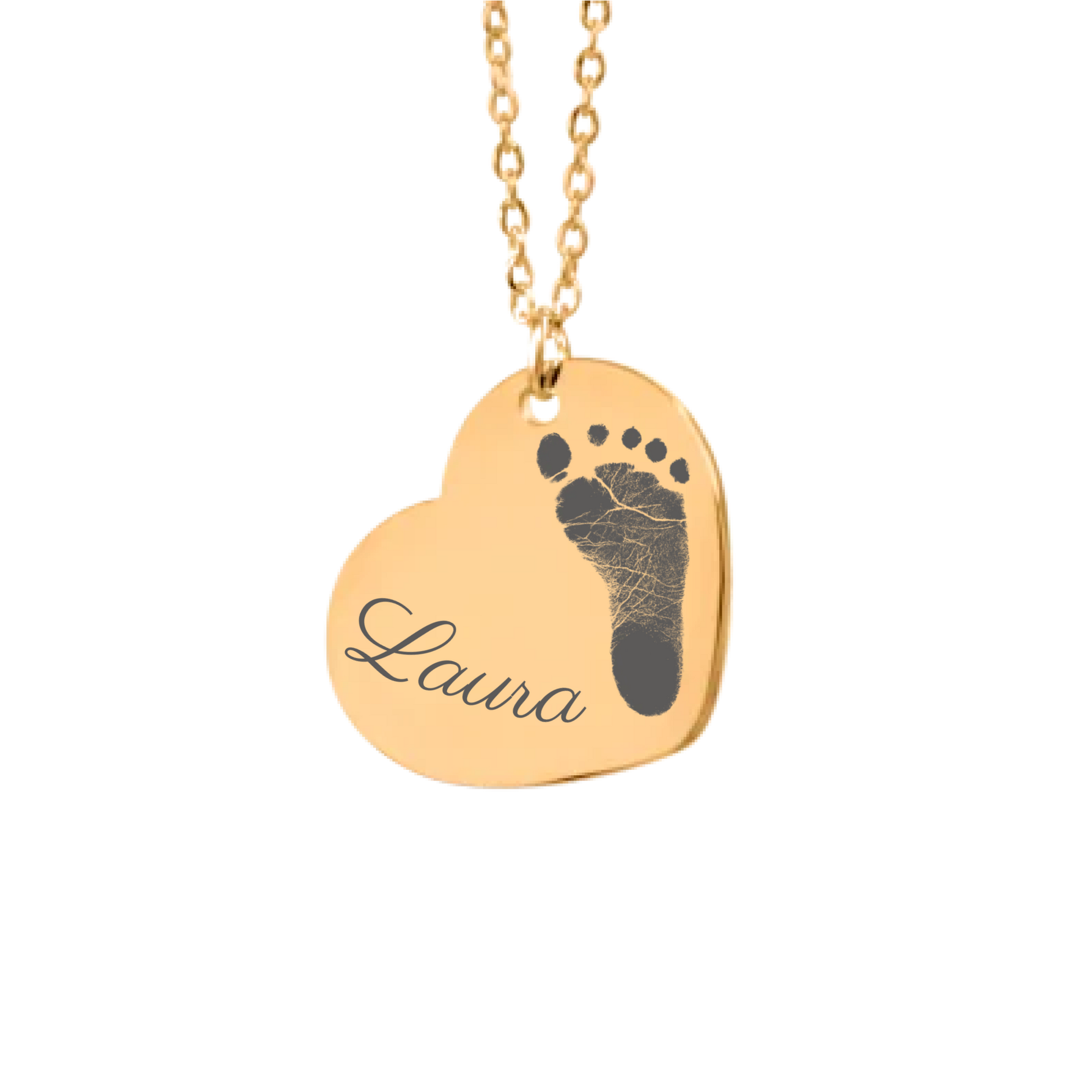 Der Anhänger kann mit einem persönlichen Fußabdruck sowie einem Namen graviert werden. Jedes Design entsteht individuell und wird mit viel Sorgfalt gefertigt, um Ihre ganz persönliche Geschichte widerzuspiegeln.